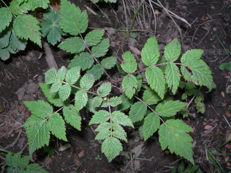 小叶7-11枚,卵形或卵状披针形,长1-5.5厘米,宽0.8-2.5厘米,下面沿叶脉具柔毛和小皮刺,边缘具缺刻状重锯齿,顶生小叶边缘有时浅裂或3裂;叶柄长1-3厘米,疏生小皮刺;托叶线状披针形。
