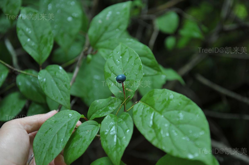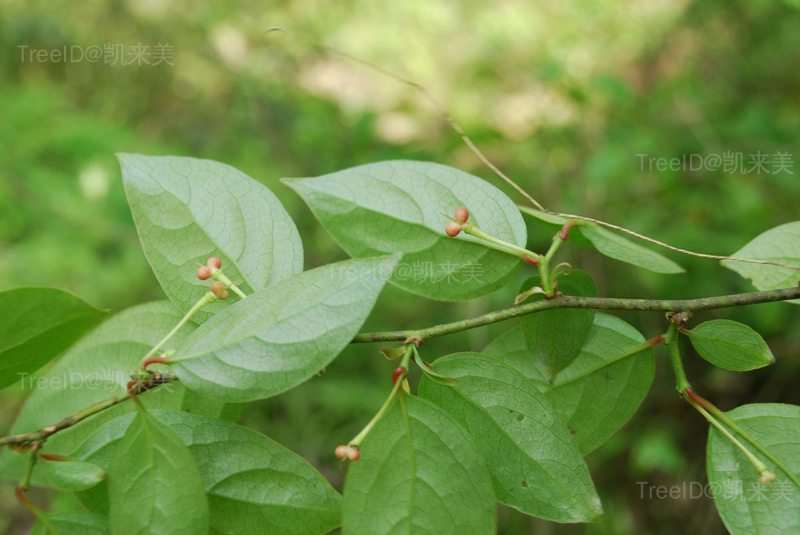 叶长圆形或长圆状卵形,长3.5-8厘米,宽3-4厘米,先端尾状渐尖;叶柄长4-10毫米,被长柔毛。