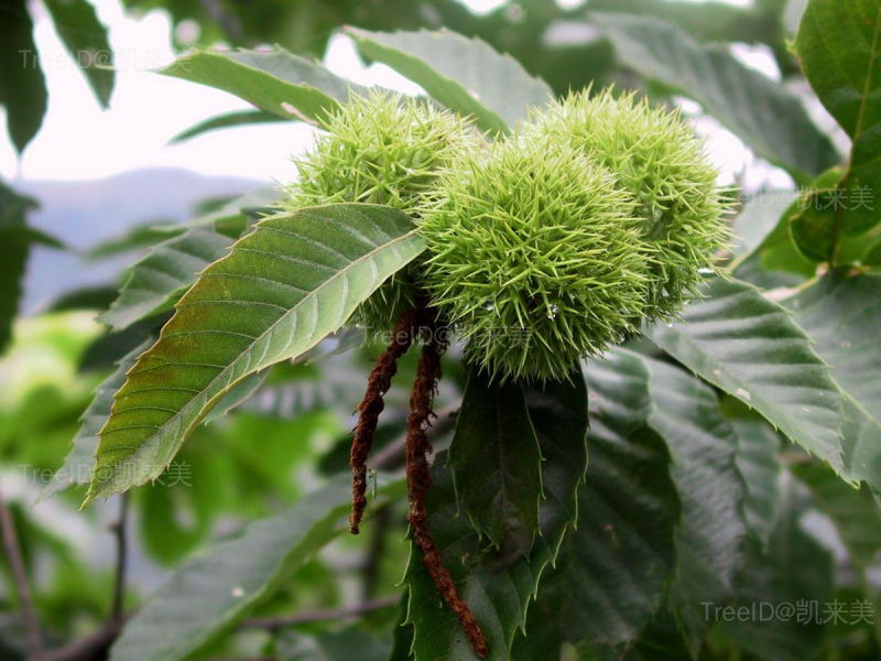 壳斗具刺,全包坚果。坚果卵形,褐色。